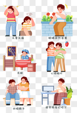 一组卡通女孩生病感冒症状预兆套图系列六素材