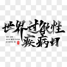 世界过敏性疾病日黑色毛笔书法字