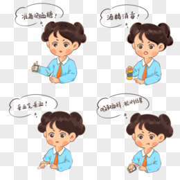 一组手绘免抠女孩测血糖合集元素