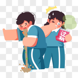 创意插画儿童吃了过期食物呕吐元素