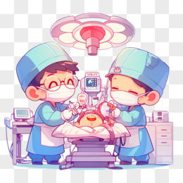 插画风手术室医生免抠元素