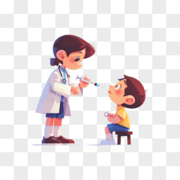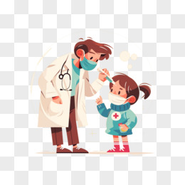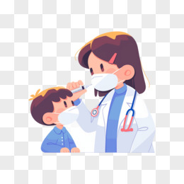 卡通手绘医生给病人量体温打针元素