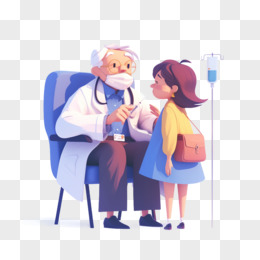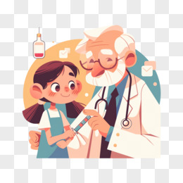 卡通手绘医生给病人打针元素