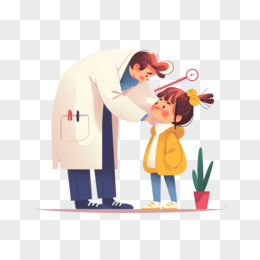 卡通女孩躺在床上父亲拿着温度计给他测体温免抠元素