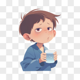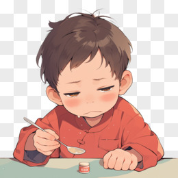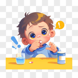 卡通男孩在桌子边吃药免抠元素