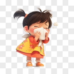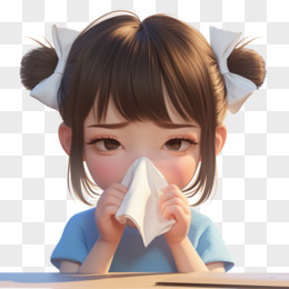 3D卡通女孩拿着纸巾擦鼻涕免抠元素