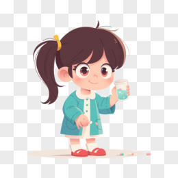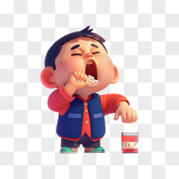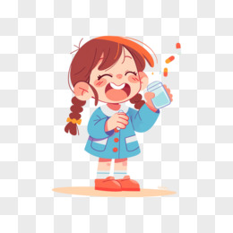 3D卡通手绘小朋友吃药元素