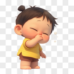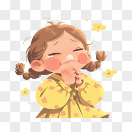 3D卡通手绘小朋友打喷嚏元素