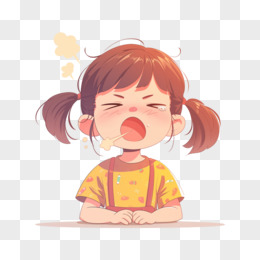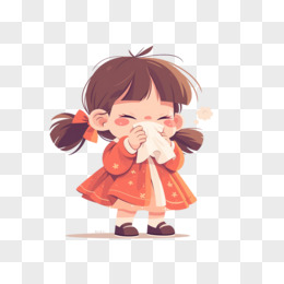 卡通女孩在桌边用纸巾擦鼻子免抠元素