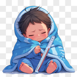 卡通过着毛毯的男孩抱着温度计免抠元素