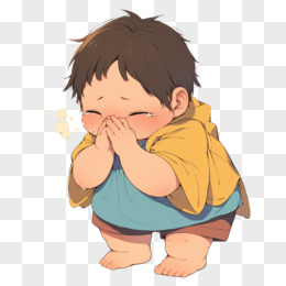 卡通手绘小朋友打喷嚏元素