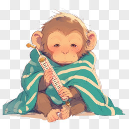 卡通过着毛毯的猴子抱着温度计免抠元素