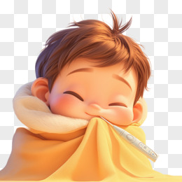 3D卡通裹着毛毯的男孩嘴里含着温度计免抠元素