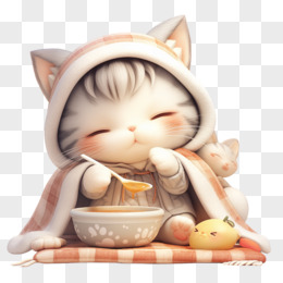 3D卡通裹着毛毯的小猫在吃药免抠元素