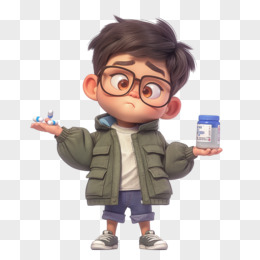 3D卡通男孩拿着药瓶免抠元素