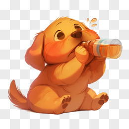 卡通小狗抱着药瓶喝药免抠元素