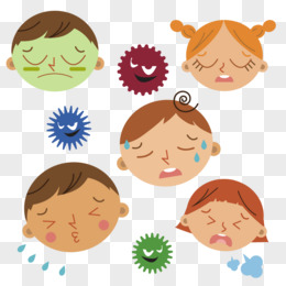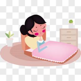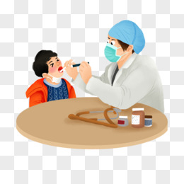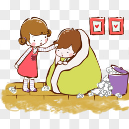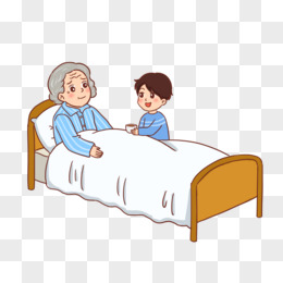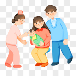 手绘卡通爸爸妈妈照顾生病的孩子素材