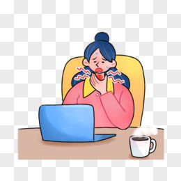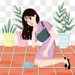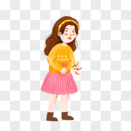 卡通手绘免抠女孩身体不舒服免抠 素材