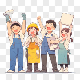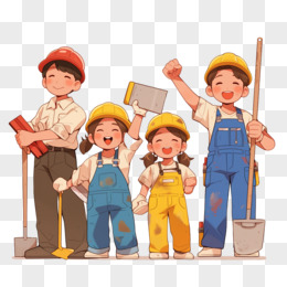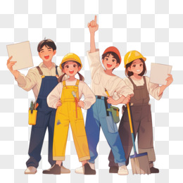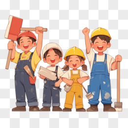 手绘卡通砌墙工人免抠元素