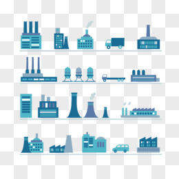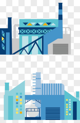手绘矢量立体蓝色智能工厂全自动生产流水线免抠素材