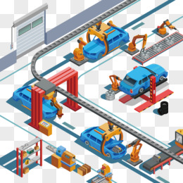 卡通矢量立体智能工厂全自动生产流水线免抠素材