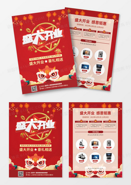 红色简约大气风盛大开业感恩钜惠开业宣传单设计