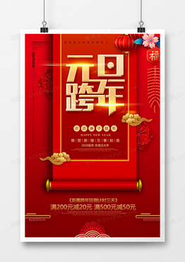 红色简约元旦跨年海报设计