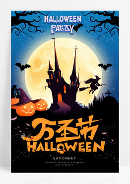 黑色恐怖惊悚场景万圣节海报