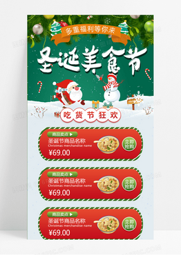绿色卡通圣诞美食节吃货节狂欢手机长图H5圣诞长图