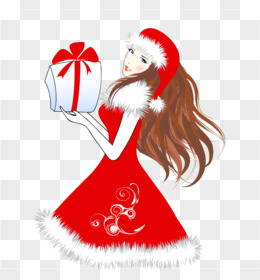 收礼物的圣诞节少女插画