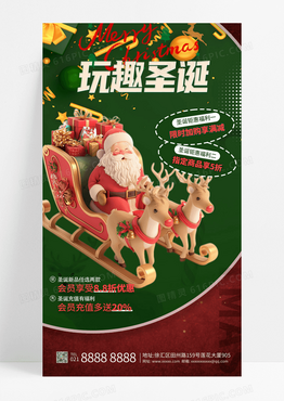 红色3d圣诞节老人优惠活动圣诞节促销手机海报