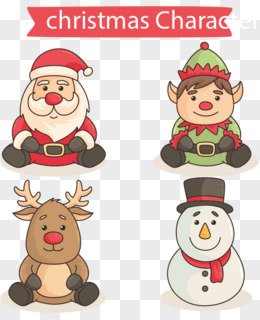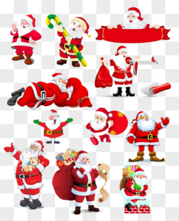 手绘卡通圣诞老人和企鹅被灯泡缠住创意素材
