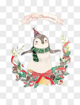 水彩手绘圣诞小企鹅