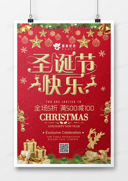 红金圣诞节快乐海报
