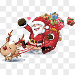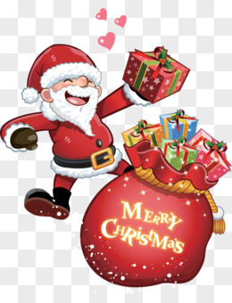 扁平手绘风格创意合成圣诞老人送礼物元素