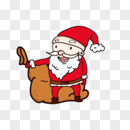 小清新卡通手绘插画圣诞老人手拿礼物元素