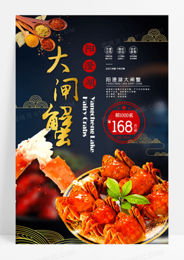 黑色大气大闸蟹实图美食宣传海报设计