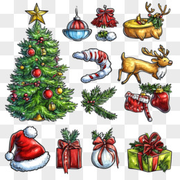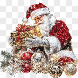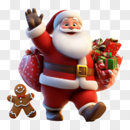 卡通圣诞节抱着礼盒站在礼盒堆旁的圣诞老人免抠元素