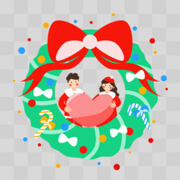 绿色圣诞树戴圣诞帽红苹果平安夜礼物