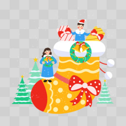 手绘卡通圣诞节圣诞了老人礼物免抠元素