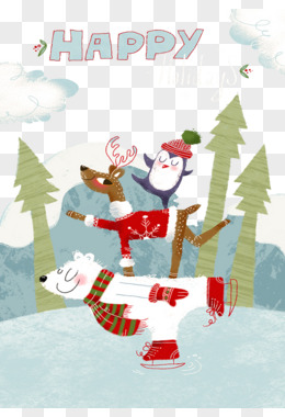 手绘驯鹿北极熊圣诞