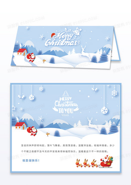 蓝色剪纸插画圣诞节贺卡