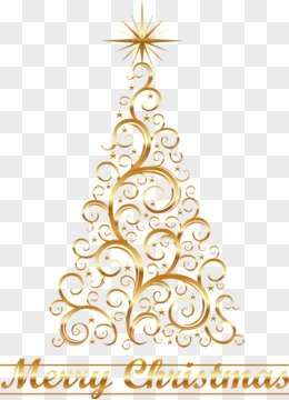 手绘金色线条圣诞树免抠元素