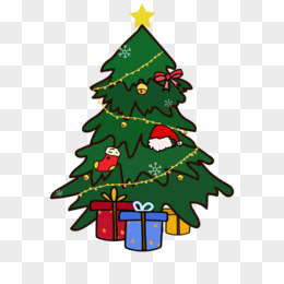 手绘卡通圣诞老人与麋鹿装饰圣诞树素材