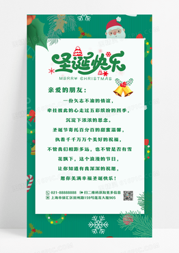 绿色圣诞祝福手机文案海报圣诞节贺卡手机海报