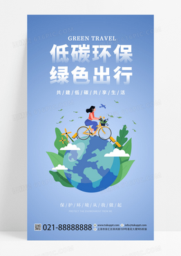 绿色插画低碳环保绿色出行环保海报低碳生活手机宣传海报
