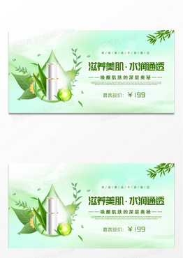 简约淡绿生机迸发美妆宣传展板化妆品护肤品