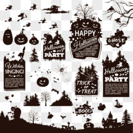 一组蜡笔风格万圣节贴纸套图装饰元素