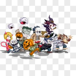 手绘卡通万圣节之坐在扫帚上的小巫女