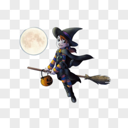 手绘插画风万圣节骑着扫把正在飞行的黄发魔女元素